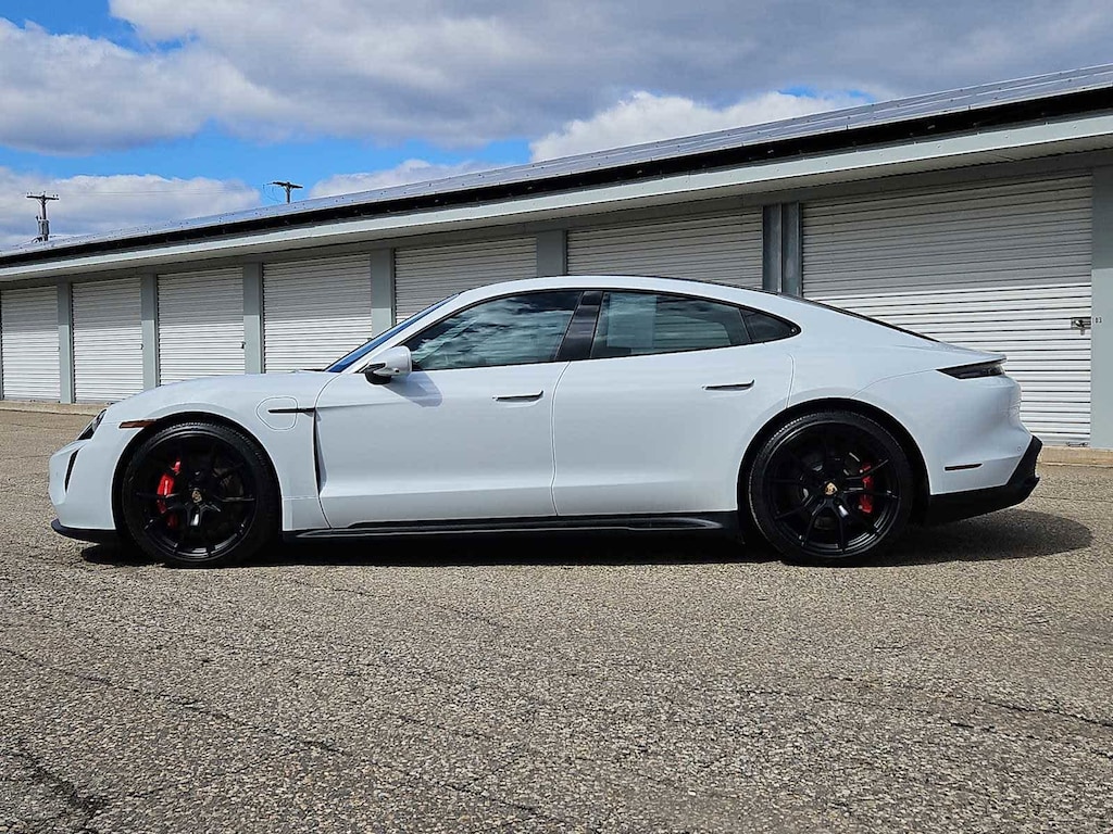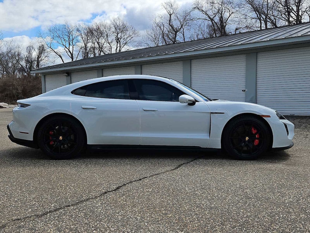 Leather Seats, Navigation, All Wheel Drive, Quad Bucket Seats, Power Liftgate, Satellite Radio, iPod/MP3 Input, Bluetooth®, Keyless Start, Hands-Free Liftgate Rear Spoiler, MP3 Player, Keyless Entry, Remote Trunk Release. Serviced here, Non-Smoker vehicle, Carrara White Metallic 2022 Porsche Taycan GTS Electric Motor 2-Speed Automatic AWD DR Leather Interior in Slate Grey 2Y Carrara White Metallic P6U Premium Package 6XV Power Folding Exterior Mirrors 2V4 Ionizer QE1 Storage Package 9VL BOSE Surround Sound-System 3FG Fixed Panoramic Roof in Glass VW5 Thermally & Noise Insulated Glass KA6 Surround View 79J Lane Change Assist (LCA) Q77 All-Season Tires for 21 Wheels 48D 21 RS Spyder Design Wheels 5KA Rear 2+1 Seats 4D3 Ventilated Seats (Fro Porsche GTS with Carrara White Metallic exterior and Slate Grey interior features a Electric Motor.