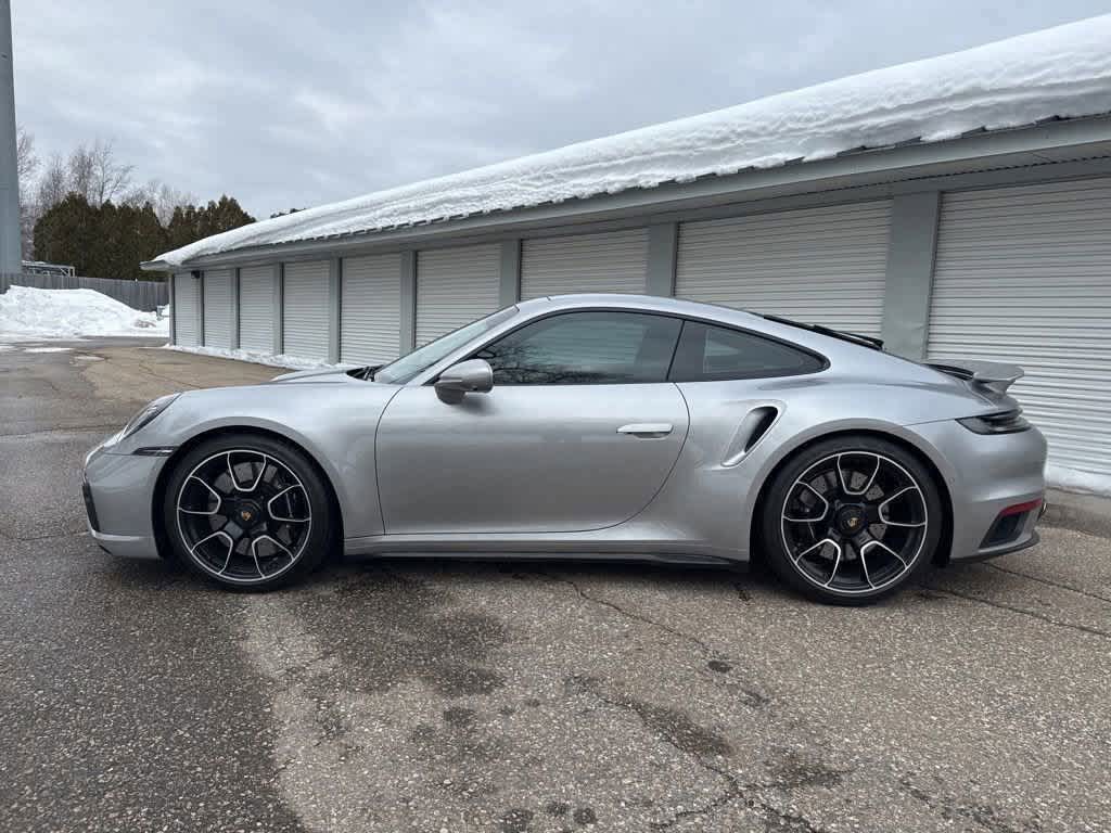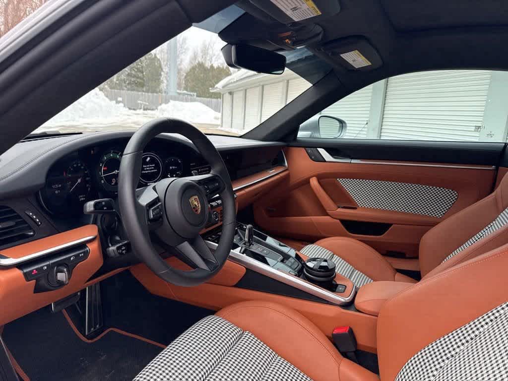 992430 911 Turbo (MY24)EC Heritage Design Interior - Classic in Black/Semi-Aniline Classic CognacU2 GT-Silver Metallic04C Heritage Design Package - Classic3FD Electric Slide/Tilt Sunroof 6FU Exterior Mirror Base in Exterior ColorVK1 Rear Side Air Intakes in Exterior ColorAAK 911 Logo on Rear in Exterior ColorUD1 Under Door Puddle Light Projectors 2W6 Exclusive Design Fuel Cap 6BB Rear Lid Grille Vertical Slat Inlays in Exterior Color 1BV PASM Sport Suspension (Lowered 10mm) 1P7 Porsche Dynamic Chassis Control (PDCC) 2UH Front Axle Lift System 0P5 Sport Exhaust System incl. Exclusive Design Tailpipes in Silver 1N3 Power Steering Plus 1LR Brake Calipers in High Gloss Black 1NV Wheels Painted in High Gloss Black46U 20/21 911 Turbo S Exclusive Design WheelsBYE Personalized Vehicle Keys Painted incl. One Key Pouch in LeatherQ1J Adaptive Sport Seats Plus (18-way) with Memory Package 2PJ Heated GT Sport Steering Wheel 3HA Deletion of QuiltingBHZ Extended Heritage Design Leather Package 7F4 PDK Gear Selector in Aluminum 5HD Extended Dashboard and Door Panel Package in LeatherQE1 Storage Package 5XZ Sun Visors in LeatherAYE Heritage Design Floor Mats 6A7 Fire Extinguisher 0PA Preparation for Deletion of Model DesignationALC Passenger Cupholder Trim in Leather i.c.w. Exclusive Manufaktur Leather Interiors 8JU LED-Matrix Design Headlights in Black incl. Porsche Dynamic Light System Plus (PDLS+) 8VH Exclusive Design Taillights 6XV Power Folding Exterior Mirrors 8M1 Rear WiperFT1 Remote ParkAssist incl. Lane Change Assist and 3D Surround View 9JD Smoking Package