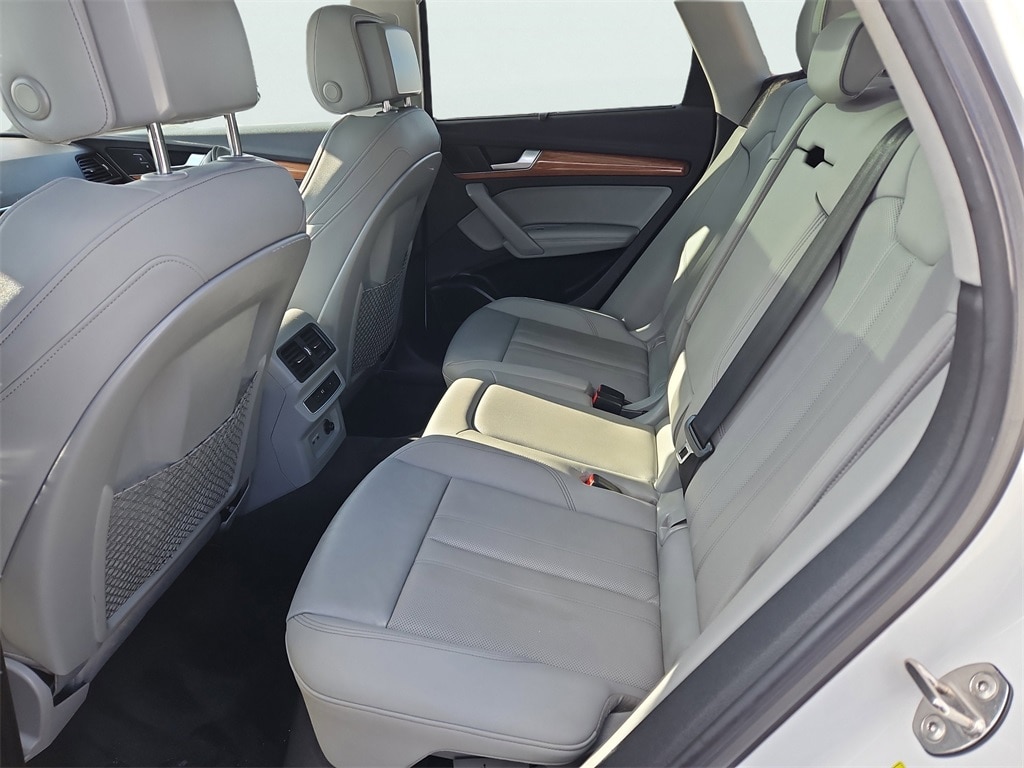 Q5 Prestige with Warm Weather package (Sport Seat both front seats identical with cool ventilation). Riding on air. There is no other way to put it. The sport seats difference other than cooling is “wings” that hold your butt and back in place, a 24 position electric adjustment on BOTH identical front seats with thigh support extenders, excellent for a couple with very bad backs. Power: watch out for fishtailing as you can feel G forces when accelerating, if you want. When researching a replacement for our sloppy 2017 Pilot I noticed most owners of other new vehicles in the south were complaining about AC unable to keep up with the Florida, Texas and desert heats. No problem here, the Q5 has more cool air than needed here at 5200’ in the sunny July southwest desert. Instrumentation is terrific with heads up display, maps and routing directly in front of the driver. (What is more ridiculous than the cars that put the map in the center stack and aim it straight to the rear of the car? Who is sitting on the shift to look forward at the map?) Moving on, the interior materials scream quality. Plenty of rear legroom for a knee replacement patient and headroom not a problem anywhere. Rear seats recline a couple inches. Owners manual very well written with detail. You can spend an evening laughing hysterically at the index though. Looking to program the garage door opener? Look in a subcategory under “O”, “Open and Close”! It goes on, and kept us looking up things just to laugh at where they are. Summarizing: most comfortable luxurious road rocket I’ve ever owned. - 5.0