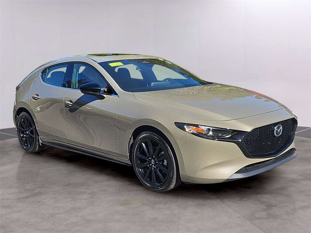 Stylish, athletic, and packed with turbocharged performance, this one-owner 2024 Mazda3 2.5 Carbon Turbo delivers an exceptional blend of refinement and driving excitement. Equipped with a 2.5L Skyactiv-G Turbo engine paired with i-ACTIV AWD, it provides powerful acceleration and precise controlideal for navigating the diverse roads of Bostons North Shore. Inside, youll find premium materials and thoughtful design, including heated leather-trimmed seats, a power moonroof, dual-zone climate control, and an 8.8-inch Mazda Connect display with Apple CarPlay and Android Auto integration. Safety comes standard with i-Activsense driver-assist features, including adaptive cruise control, blind-spot monitoring, and lane-keep assist. With only 15,350 miles and an estimated in-service date of 10/26/2024, this Mazda3 offers near-new condition and factory-backed warranty coverage for peace of mind.