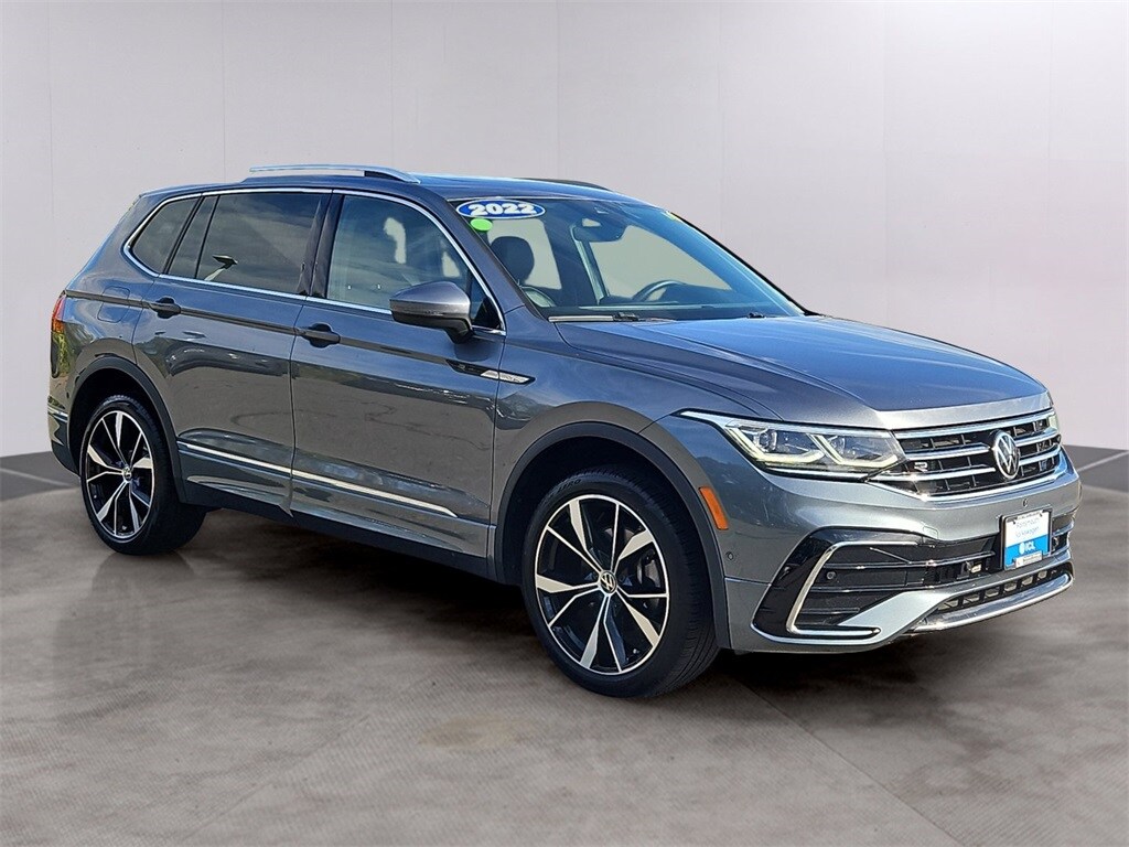 Platinum Gray Metallic 2022 Volkswagen Tiguan 2.0T SEL R-Line AWD 8-Speed Automatic with Tiptronic 2.0L TSI DOHC Carfax 1 Owner! Accident Free!, AWD, 4-Wheel Independent Suspension, 8 Speakers, ABS brakes, Air Conditioning, AM/FM radio: SiriusXM with 360L, Auto High-beam Headlights, Auto-dimming Rear-View mirror, Automatic temperature control, Brake assist, Dual front impact airbags, Dual front side impact airbags, Electronic Stability Control, Fully automatic headlights, Heated front seats, Heated steering wheel, Heated/Ventilated Front Comfort Sport Seats, Leather Shift Knob, Leather steering wheel, Memory seat, Navigation system: VW Car-Net Guide & Inform, Outside temperature display, Perforated Vienna Leather Seating Surfaces, Power driver seat, Power Liftgate, Power moonroof, Power passenger seat, Power steering, Power windows, Radio: MIB3 Discover Media AM/FM/HD, Rear window wiper, Security system, Split folding rear seat, Steering wheel mounted audio controls, Telescoping steering wheel, Ventilated front seats, Wheels: 20" Machined Black Alloy.